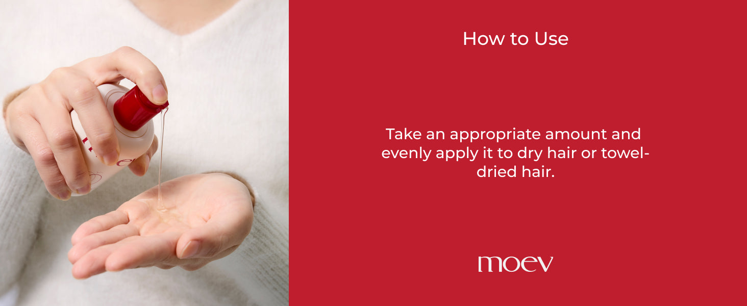 خذي كمية مناسبة ووزعيها بالتساوي على الشعر الجاف أو الشعر المُجفف بالمنشفة
