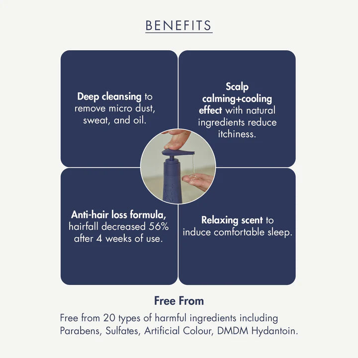 شامبو فاخر بتركيبة جل منعشة، لا يكتفي بالتنظيف فقط، بل يمنح فروة الرأس تجربة تجديد عميقة أثناء النوم.